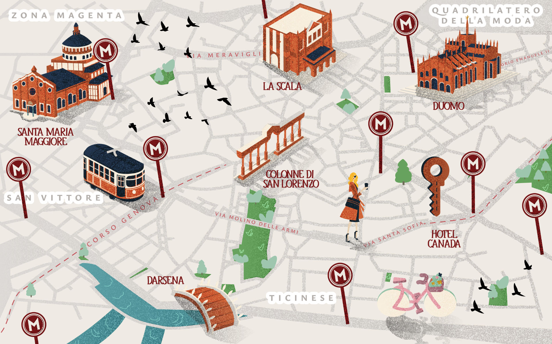 L’Hotel Canada gode di una posizione strategica per muoversi facilmente a Milano, a piedi o con i mezzi pubblici.